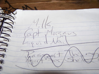 I don't think you'll be too upset (or surprised) to learn that I didn't take any pictures as this process was going on. So instead I'll show you a grocery list I found when I was retrieving notes from my notebook on Saturday. I don't remember writing it, but...